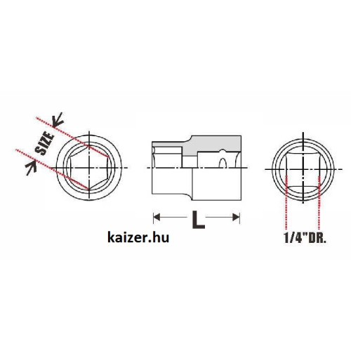 | Szár / Befogás | Négyszög 1/4" 6,33 mm | DIN Kézi szerszám | DIN3120 Kézi dugókulcs |