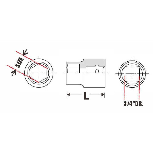 | Szár / Befogás | Négyszög 3/4" 19,05 mm | DIN Kézi szerszám | DIN3129 Gépi dugókulcs |
