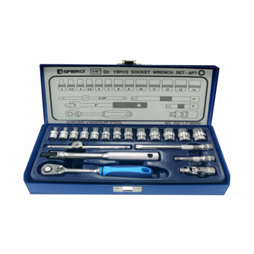Kézi dugókulcs Klt 1/4" 4-14 19 részes 6 szög